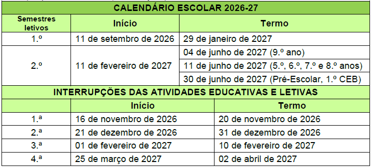 Durante as interrupções das atividades educativas e letivas definidas no calendário, estão assegurados os serviços de AAAF e CAF na Educação Pré-Escolar e 1.º Ciclo, respetivamente, nos moldes do que tem sido prática nos anos letivos anteriores.